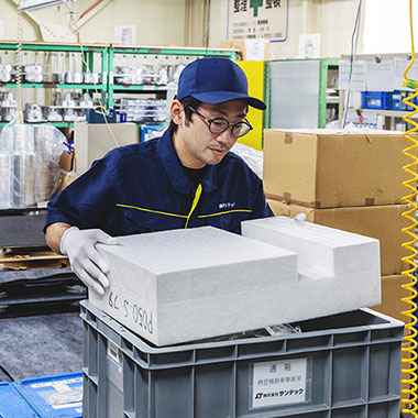 サンテックは半導体関連装置をはじめ電子顕微鏡や航空機部品など、幅広い分野で高品質・高精度の金属加工を行っています。